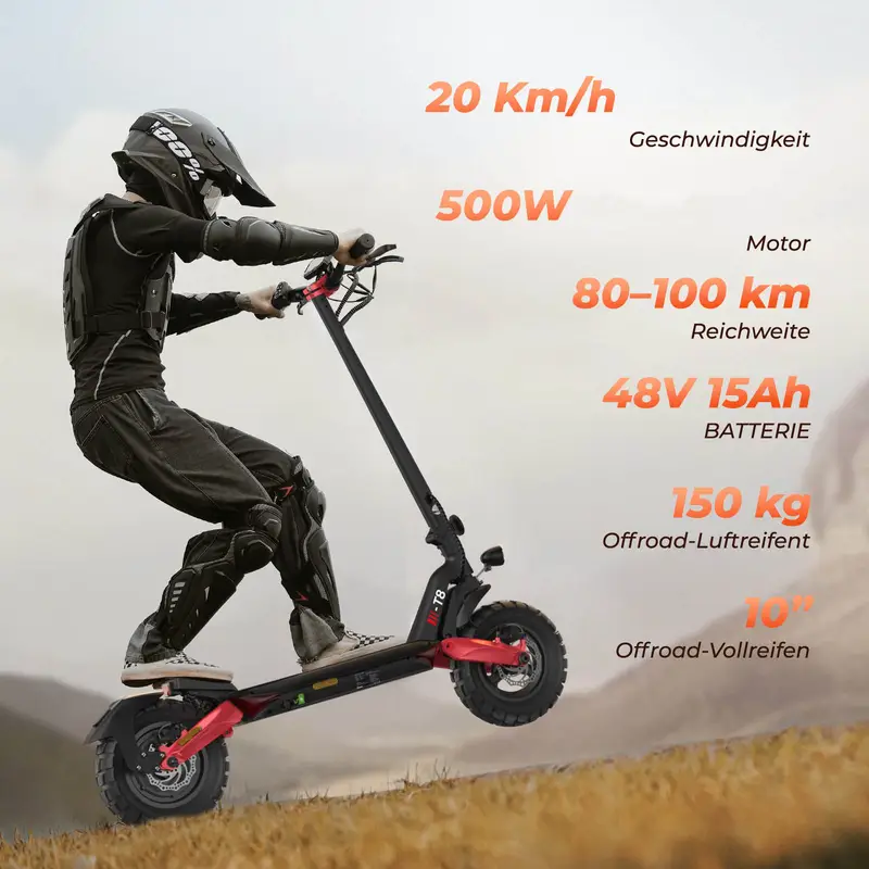 10 Zoll E Scooter mit Straßenzulassung für Erwachsene, max. 20 km/h Geschwindigkeit, 80-100 KM Reichweite, 48V 15Ah, Lange Reichweite,Maximale Belastung 150kg, Geländetauglicher Elektroroller, Faltbarer E Scooter mit Straßenzulassung, 4 Stoßdämpfer Design, 500W Birstenloser Motor